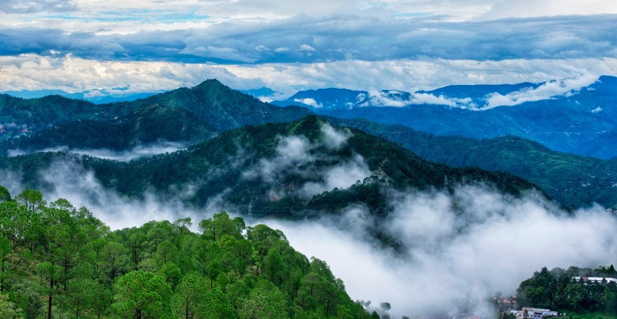 Scenic Beauty: Be captivated by panoramic views of the Pir Panjal and Dhauladhar ranges, cascading waterfalls, and dense forests of deodar and pine.